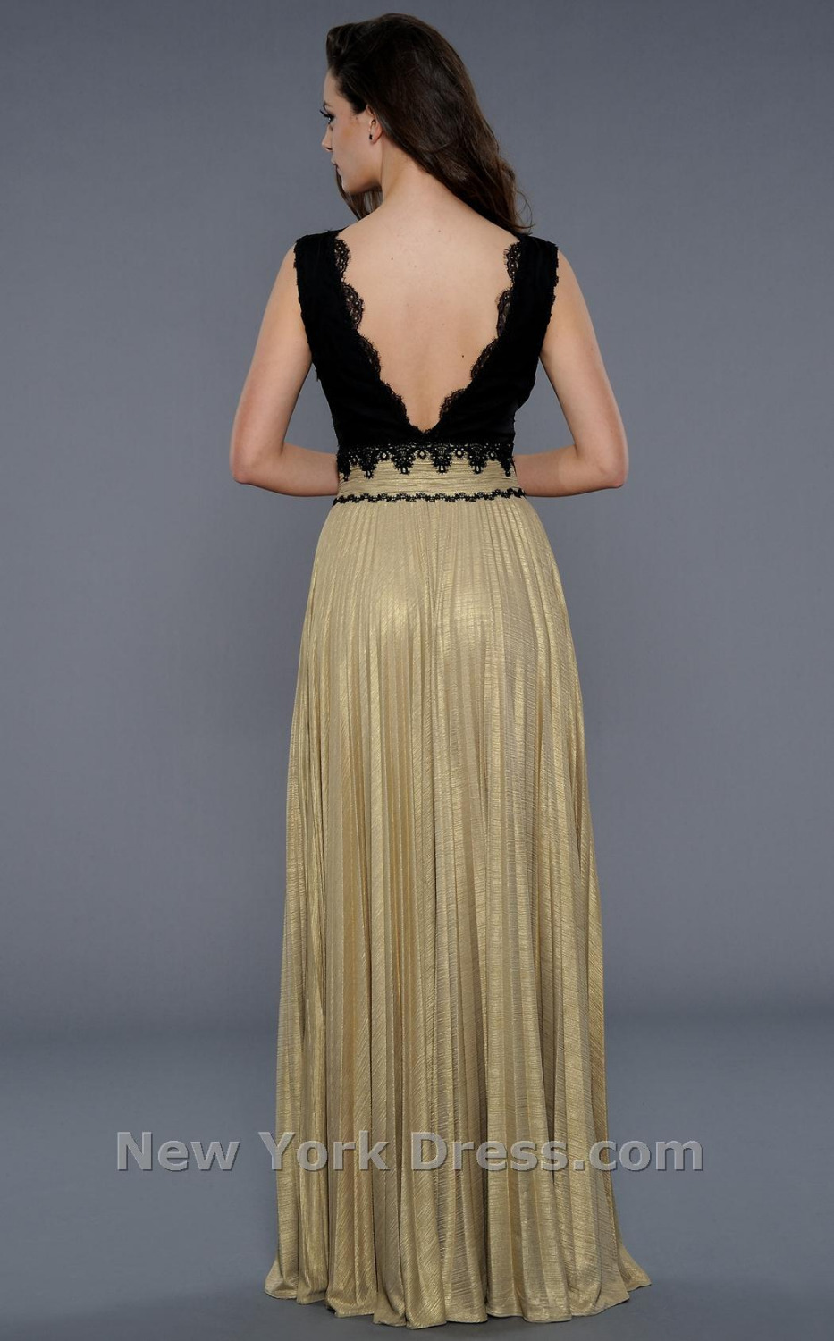 Վզի և մեջքային հատվածի V-աձև բացվածքով, վերևի հատվածում ժանյակավոր, էլեգանտ և գեղեցիկ երեկոյան զգեստ: