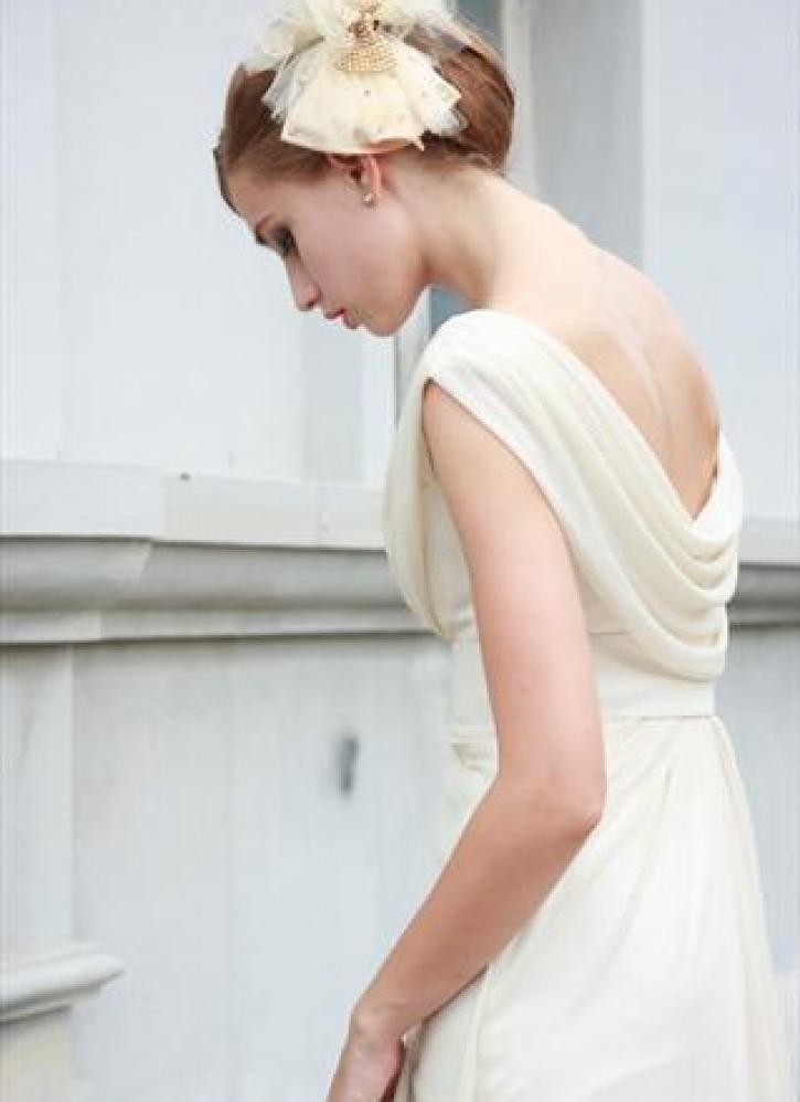 Մեջքային և վզային հատվածում թափվող կտորով էլեգանտ հարսանեկան զգեստ