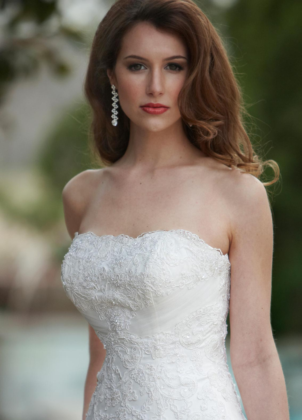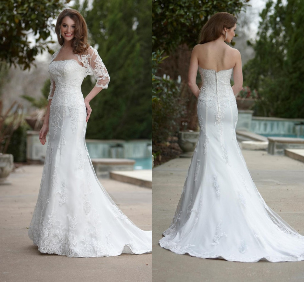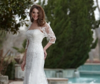 Առանց ուսակապերի, բաց մեջքով, երկար, հասարակ և ժանյակավոր հարսանեկան զգեստ: