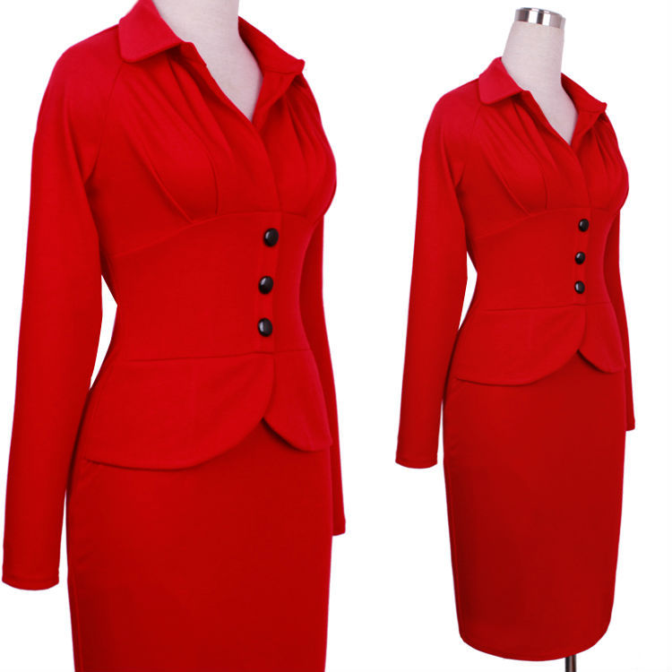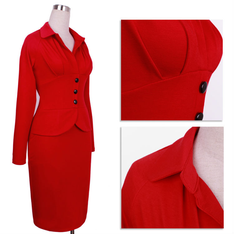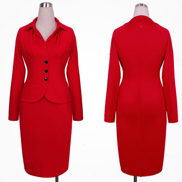 Վզի V-աձև բացվածքով, օձիքով, դասական կոստյումի տեսք ունեցող շրջազգեստ: