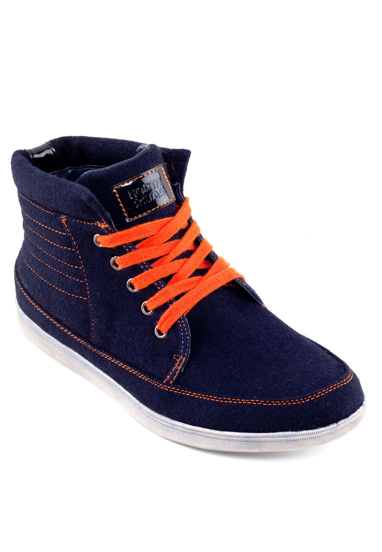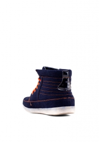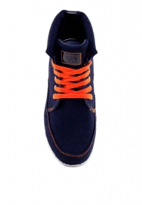 Մուգ կապույտ, նարնջագույն կոշկաքուղերով, զամշե, բարձր աշնանյին բութս:
