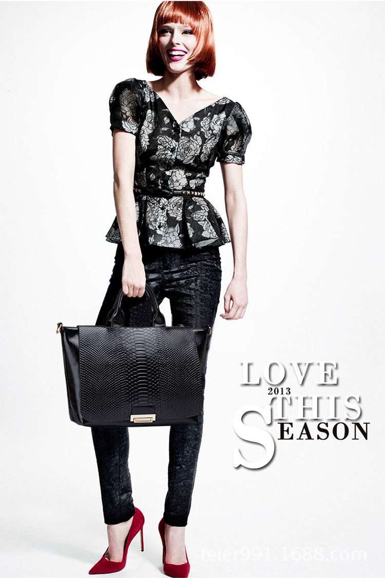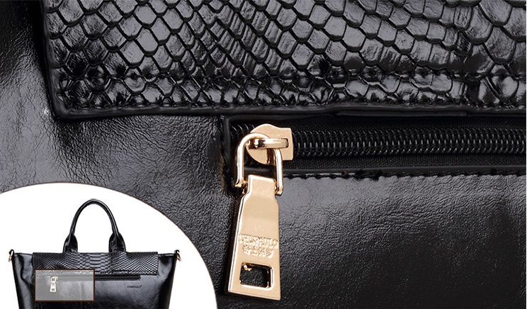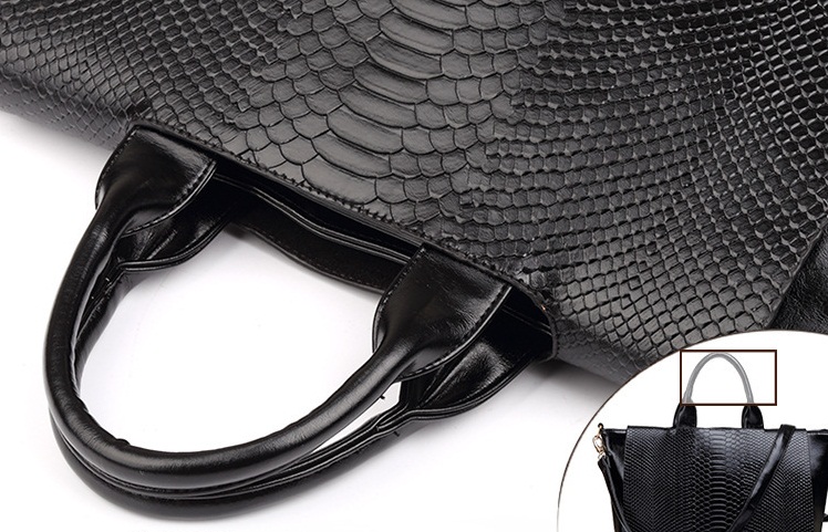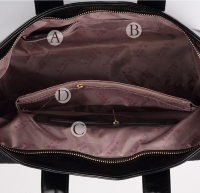 Փոքր և մեծ բռնիչներով, ներսից գրպաններով, կաշվե մեծ պայուսակ: