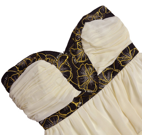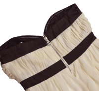 Առանց ուսակապերի, բաց մեջքով, վզի սրտաձև բացվածքով, մեջքային հատվածում շղթայով, կրծքավանդակից ներքև փառերով, կարճ, ինքնատիպ կոկտեյլային շրջազգեստ: Առաքումը 3-5 շաբաթ: Գումարի վերադարձ կատարվում է, երբ արտադրողը կատարում է գումարի վերադարձ մեր ընկերությանը: Ապրանքները ստւգվում են չափերի, գույնի և որակի համապատասխանության առումով: