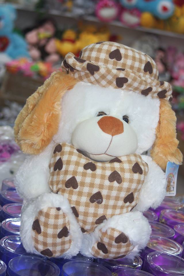 Գեղեցիկ դիզայնով, գլխարկով, շունիկի տեսք ունեցող փափուկ խաղալիք: