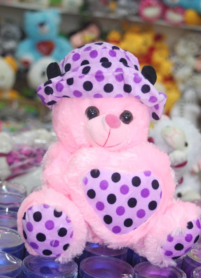Վարդագույնի և մանուշակագույնի համադրությամբ գեղեցիկ արջուկ, բարի ժպիտով: