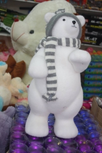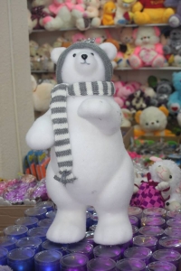Ձմեռային հանդերձներով բևեռային արջի տեսք ունեցող, գեղեցիկ խաղալիք: