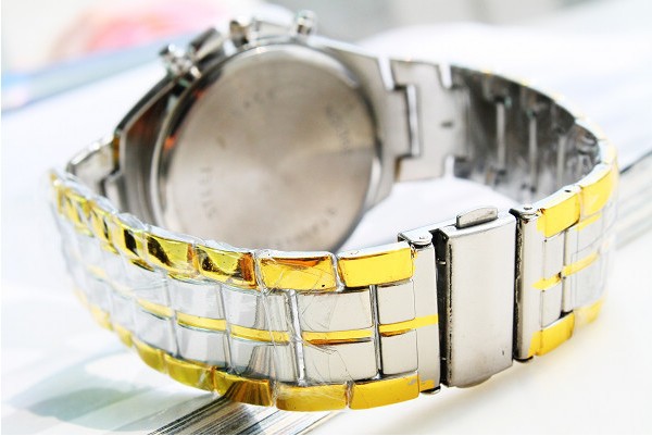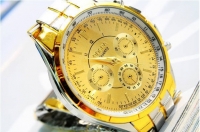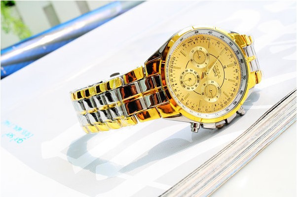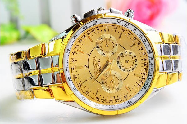 Ոսկեգույնի և արծաթագույնի համադրությամբ գեղեցիկ տղամարդու ժամացույց, պատրաստված է չժանգոտվող մետաղից: