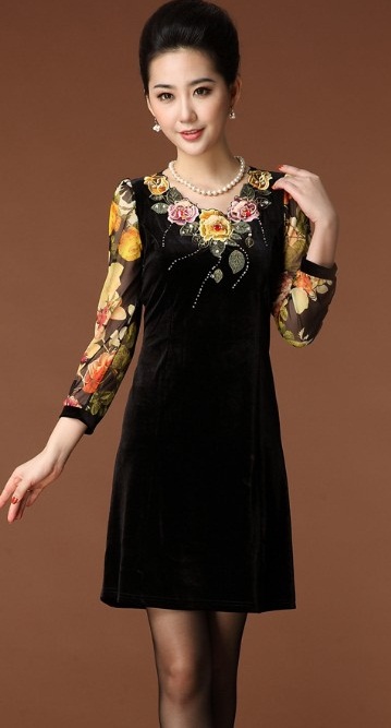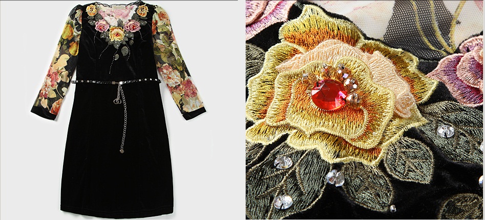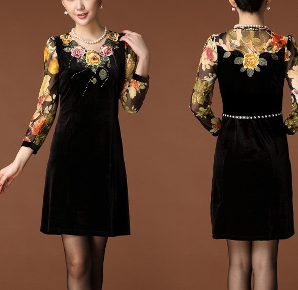 Վզի կլոր բացվածքով, շիֆոնե երկարաթև, գոտկային հատվածում գոտիվ, վերևի հատվածում ասեղնագործ ծաղիկներով, ինքնատիպ շրջազգեստ: