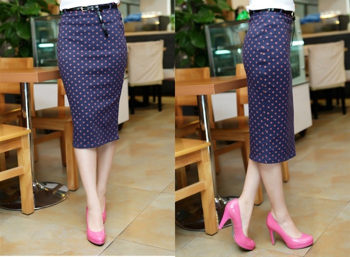 Բարձր գոտկային հատվածով, վերևից ուղիղ իջնող, գոտկային հատվածում բարակ գոտիով, գեղեցիկ և հասարակ, դասական կիսաշրջազգեստ: