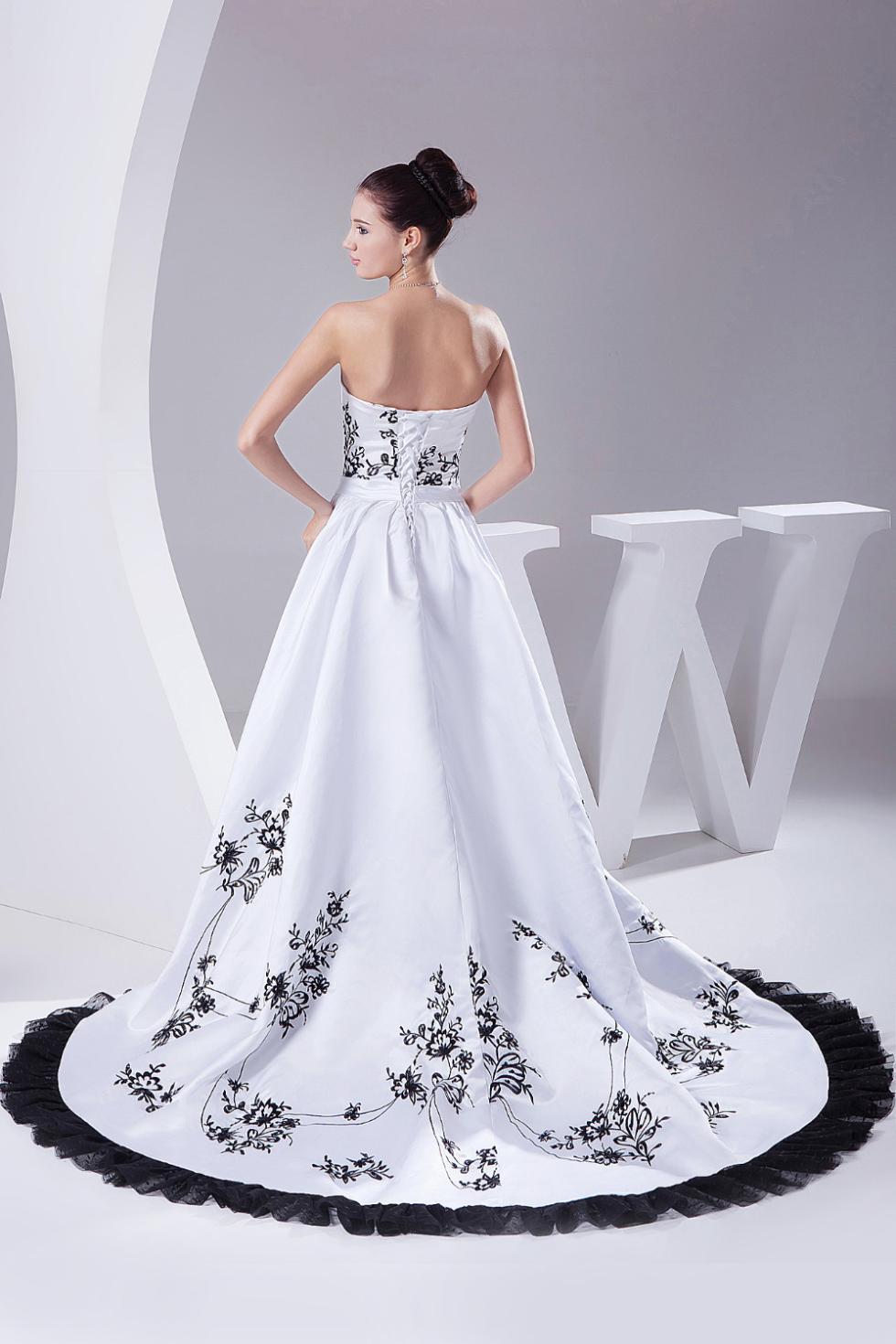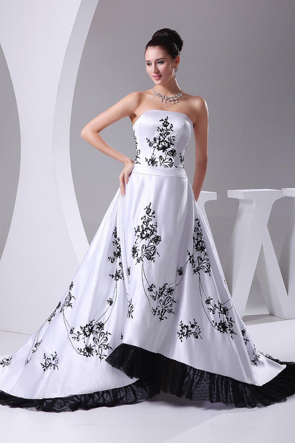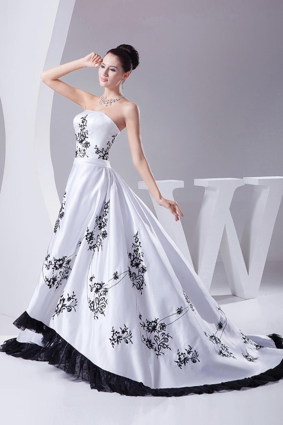 Սպիտակի վրա սև ժանյակավոր գեղեցիկ հարսանեկան զգեստ