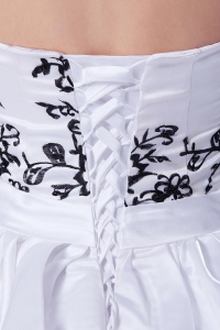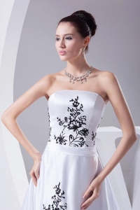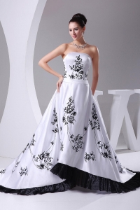 Առանց ուսակապերի, բաց մեջքով, սպտակի վրա սև նուրբ ժանյակավոր գեղեցիկ հարսանեկան զգեստ: