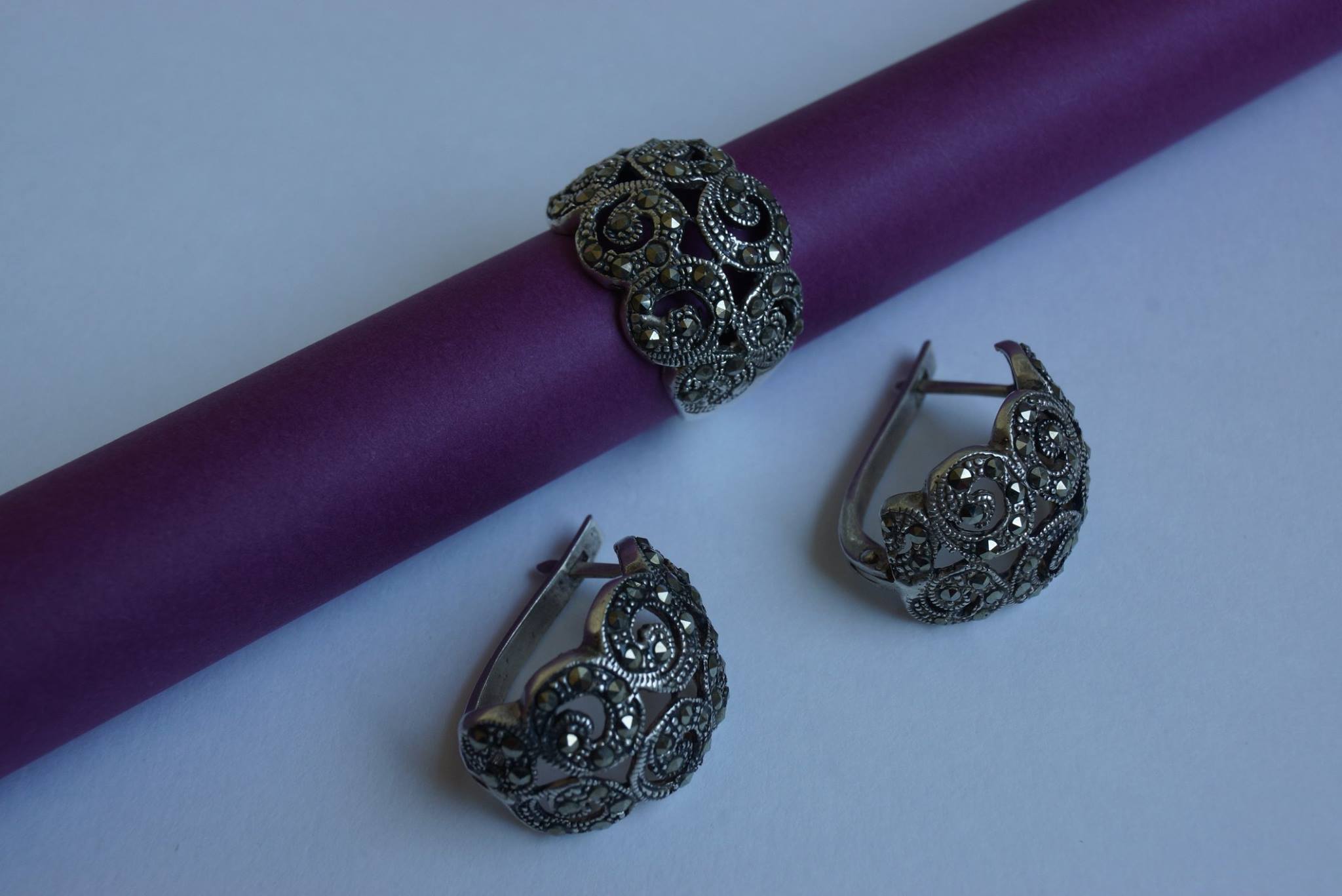 Զարդանախշային գեղեցիկ դիզայնով արծաթյա օղեր և մատանի: