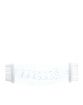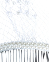 Սանրի վրա հավաքծավ մարգարտե քարերի և քողի տեսք ունեցող, մազերի գեղեցիկ աքսեսուար: