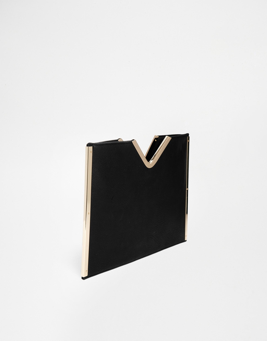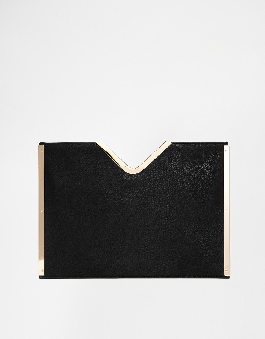 Asos Կաշվե սև կլաչ, ոսկեգույն եզրերով