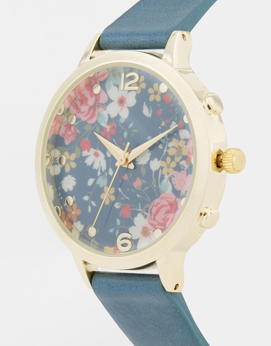 Կանացի գեղեցիկ նրբաոճ ժամացույց՝ ծաղկավոր նկարով