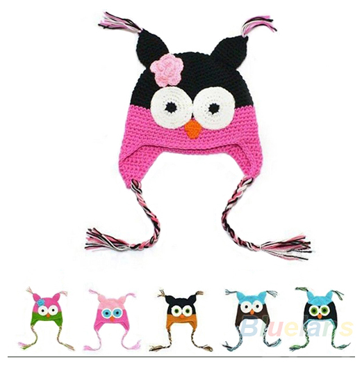 Մանկական գործված նորաձև գլխարկ՝ բուի տեսքով