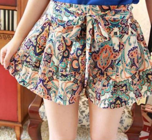 Բազմագույն նախշերով շիֆոնե նորաձև շորտեր
