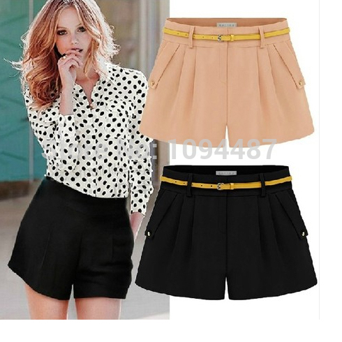 Կանացի նորաձև լայն շորտեր՝ գրպաններով և առաջամասում դարսերով