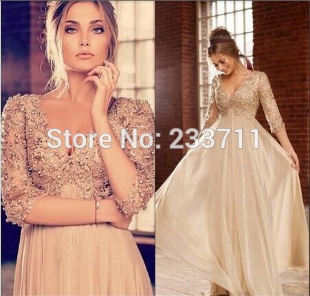 Նուրբ դիզայնով,3/4 չաոի թևերով, երկարափեշ, երեկոյան զգեստ
