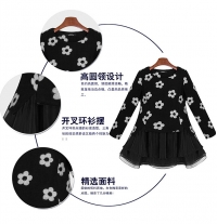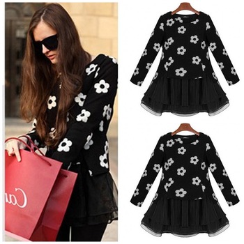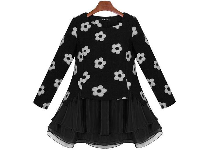 Սև գույնի սպիտակ ծաղիկներով երկարթև բլուզ և սև կարճ կիսաջրջազգեստ