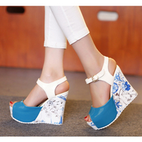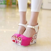 Ծաղկավոր տանկետկայով, վարդագույն, կապույտ և սպիտակ գույների նորաձև սանդալներ