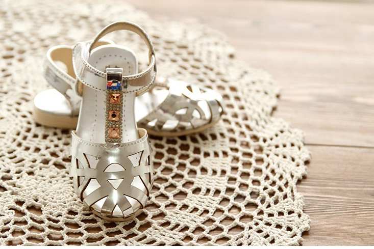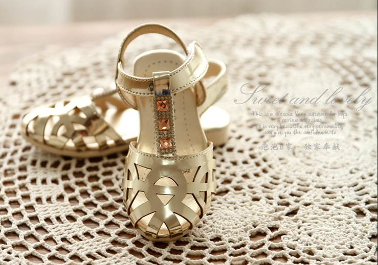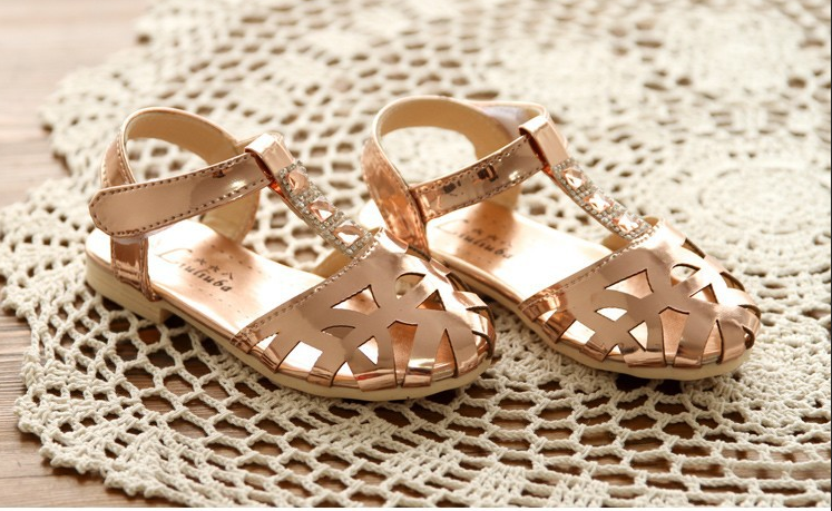 Մետաղական և փայլուն քարերի զարդարանքով, կպչուն ամրակներով, գեղեցիկ սանդալներ