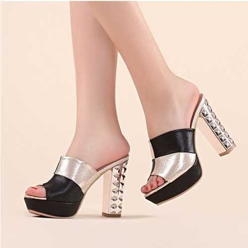 Վանդակավոր մետաղական բարձր, հաստ կրունկներով սանդալներ