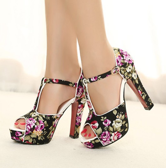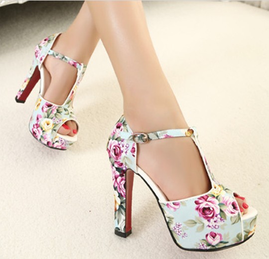 Բարձրակրունկ, ծաղկանախշ գեղեցիկ սանդալներ