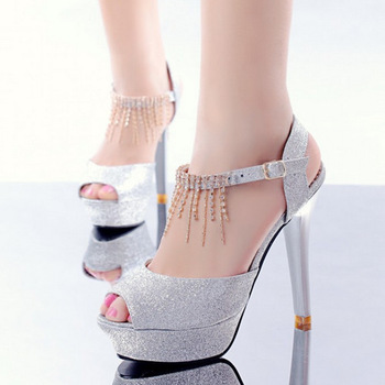 Շղթաներով, բարձրակրունկ, փայլուն գեղեցիկ սանդալներ