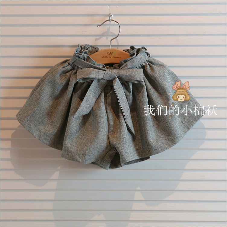 Մեծ բանտով գեղեցիկ շորտ և մոխրագույն վզով բլուզ աղջիկ երեղաների համար