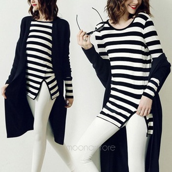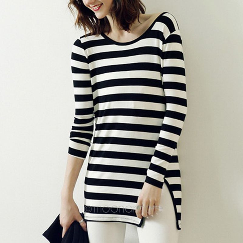 Վզի կլոր բացվածքով, կողքի կտրվածքով, գծավոր, երկարաթև շապիկ