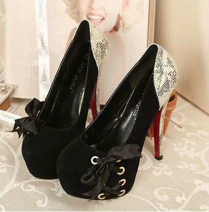 Կլոր, փակ քթերով, ատլացից բանտով բարձրակրունկ կոշիկներ
