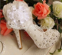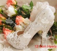 Ուլունքներով, փայլուն քարերով, մեծ ծաղիկով, հարսանեկան գեղեցիկ կոշիկ