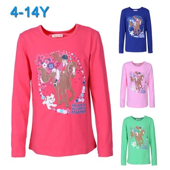Առջևի հատվածը պատկերազարդ, երկարաթև բլուզներ 4-14 տարեկան աղջիկների համար