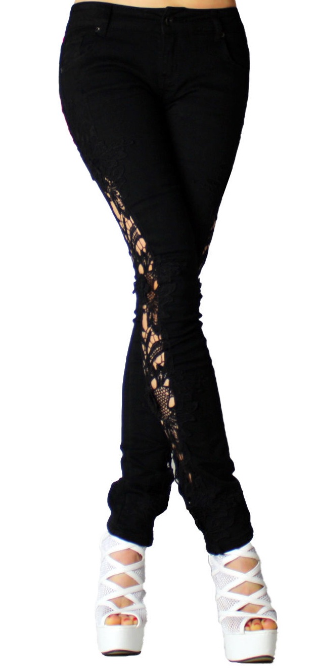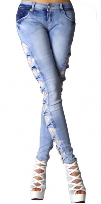 Կողքերը ժանյակավոր, նորաձև ջինսե տաբատներ