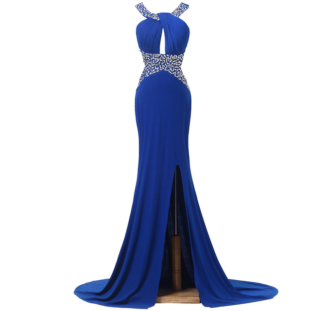 Aliexpress-Top Pretty Women Առանց մեջքի երկար երեկոյան տոնական կապույտ շրջազգեստ