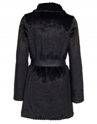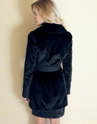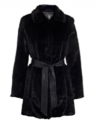 Fabric: Pile: 61% Modacrylic, 21% Acrylic, 18% Polyester. Fur Back: 100% Polyester Lining: 100% Polyester Belt: 100% Viscose with Polyurethane coating