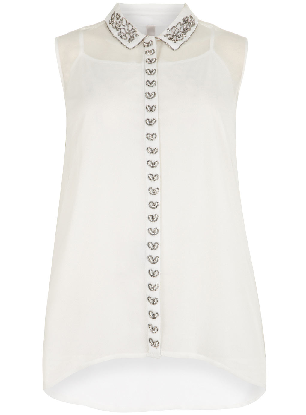 Ամառային, անթև վերնաշապիկ: Գեղեցիկ, նրբաճաշակ վերնաշապիկ՝ հուլունքներով զարդարված օձիքով: Ձեր նրբաճաշակությունն ընդգծող հիանալի վերնաշապիկ: (նախատեսված է մեծ չափսեր ունեցող կանանց և աղջիկների համար)