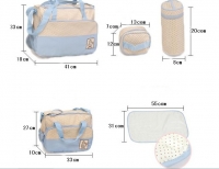 Հարմարավետ պայուսկաների հավաքածու մայրիկների համար։ Հավաքածուի մեջ մտնում է մեկ մեծ և մեկ փոքր պայուսակ, նաև պայուսակ՝ գլանաձև շշերի համար, ինչպես նաև փոքրիկ գորգ երեխայի համար։