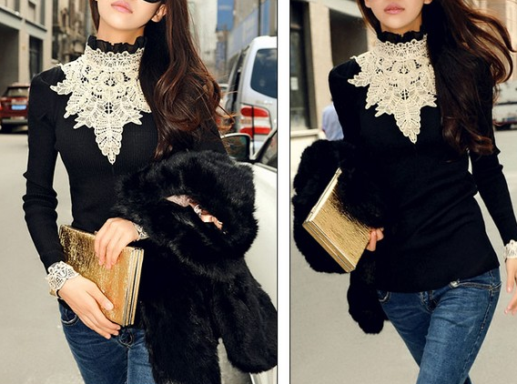 Ձեզ ենք ներկայացնում հիասքանչ այս բլուզը: Մոդելը երկարաթև է, բարձր վզով, իսկ օձիքի հատվածում առկա է նուրբ ժանյակավոր լրացում, ինչը առավել գրավիչ և կանացի է դարձնում բլուզը:
