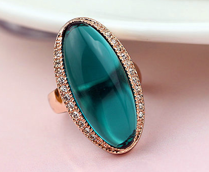 Օվալաձև, շքեղ, կանաչ քարի համադրությամբ մատանի: