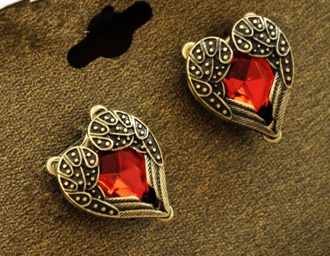 Սրտաձև, կարմիր քարով գեղեցիկ ականջօղեր: